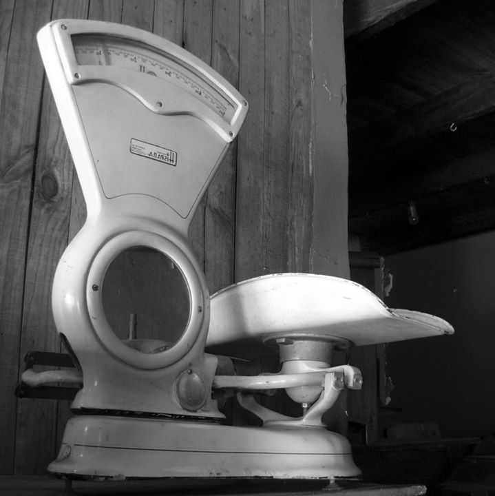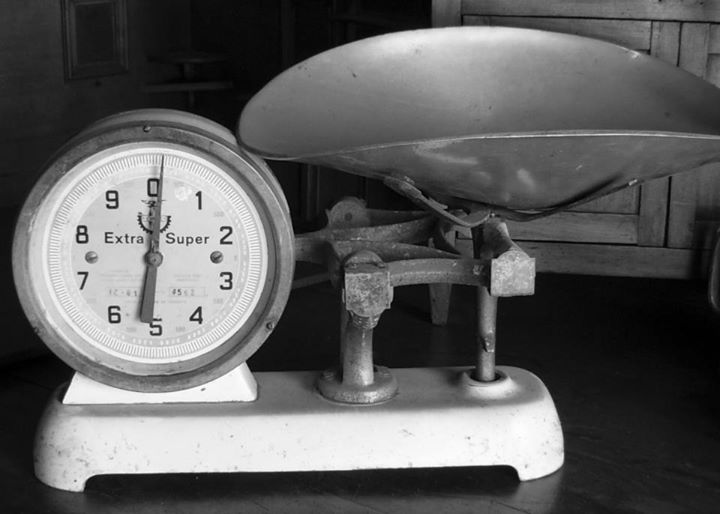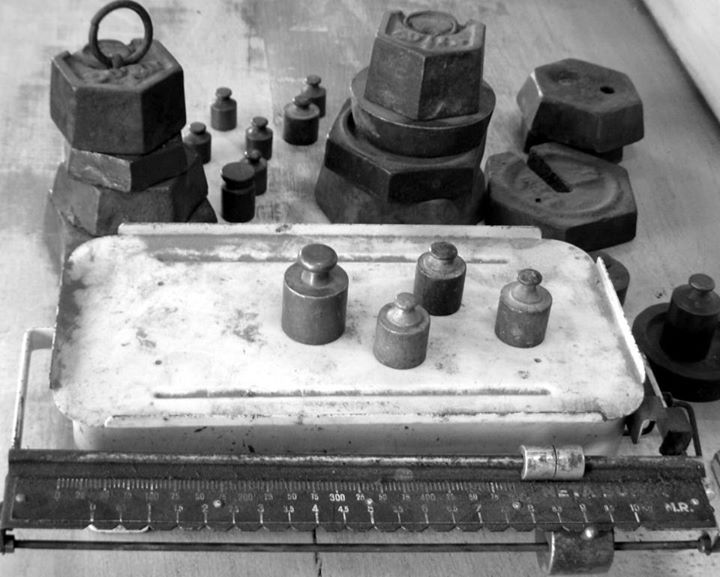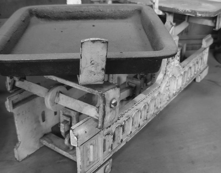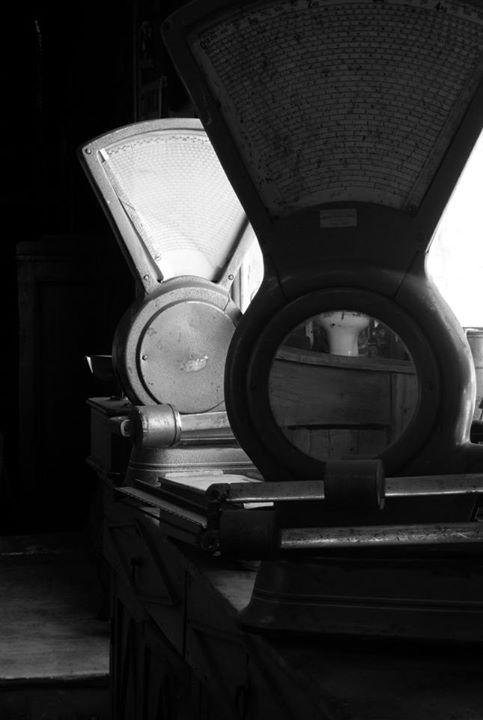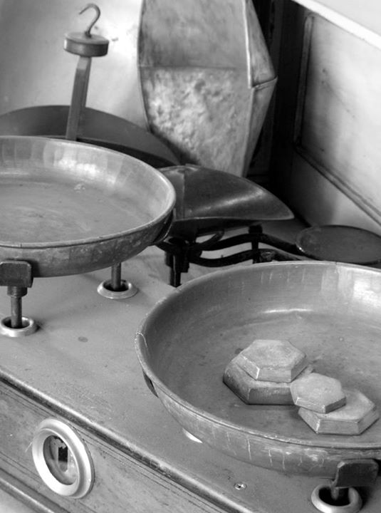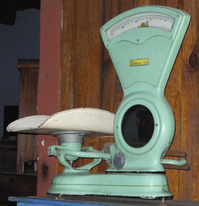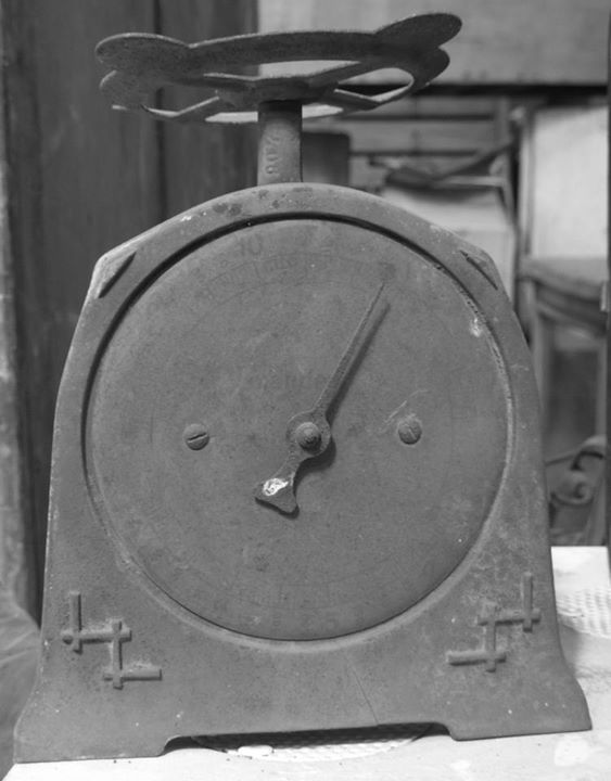 Muebles de almacén y balanzas.